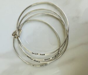 PPSS. Years ago, I decided to buy myself something for Mother’s Day. The sweetest customized bangle bracelets… I wear them almost every day and love! Check it out here.
