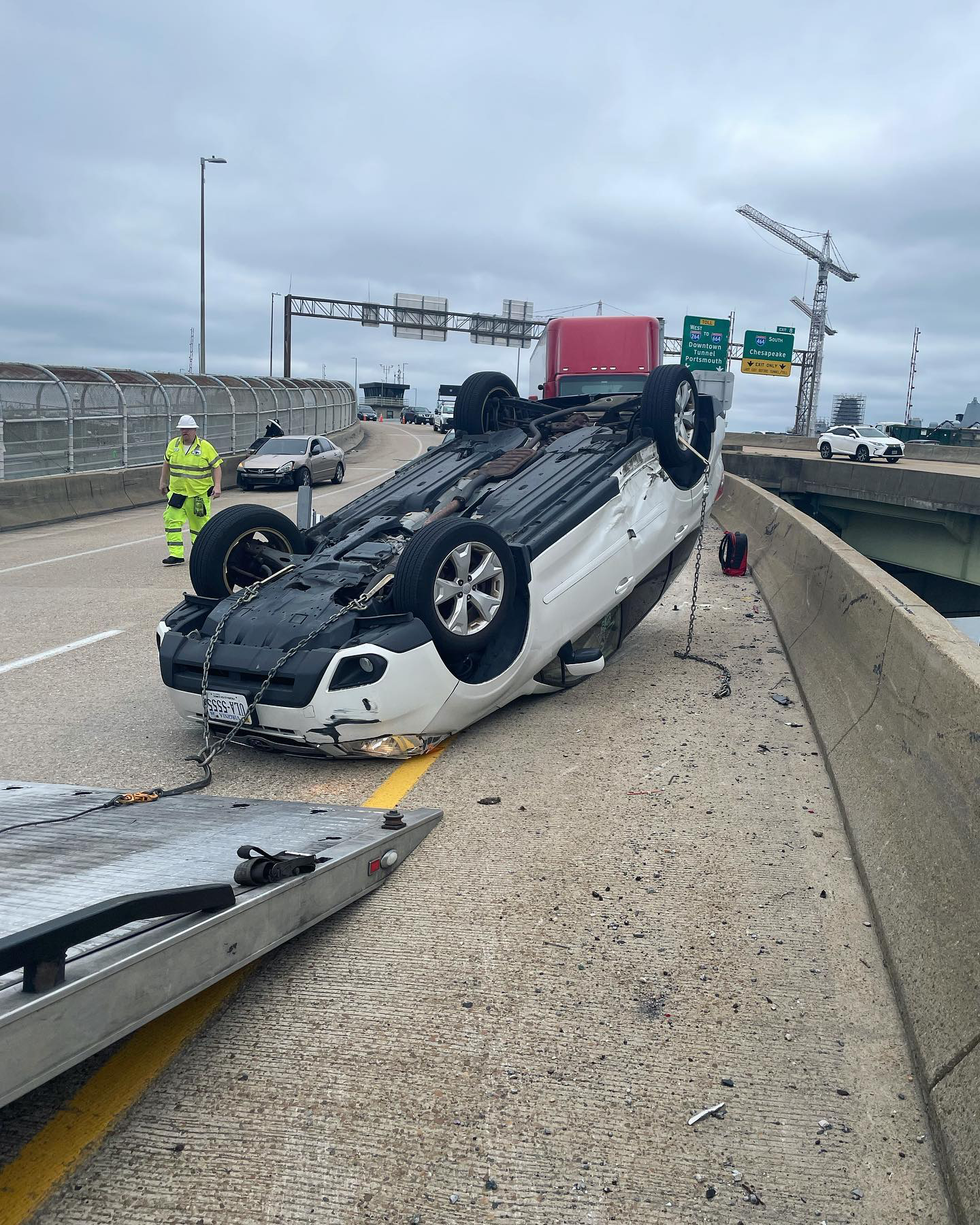 “I walked away from this… Yesterday on my way to work someone changed lanes into the side of my car, running me into the wall and flipping my car at the top of a draw bridge.“